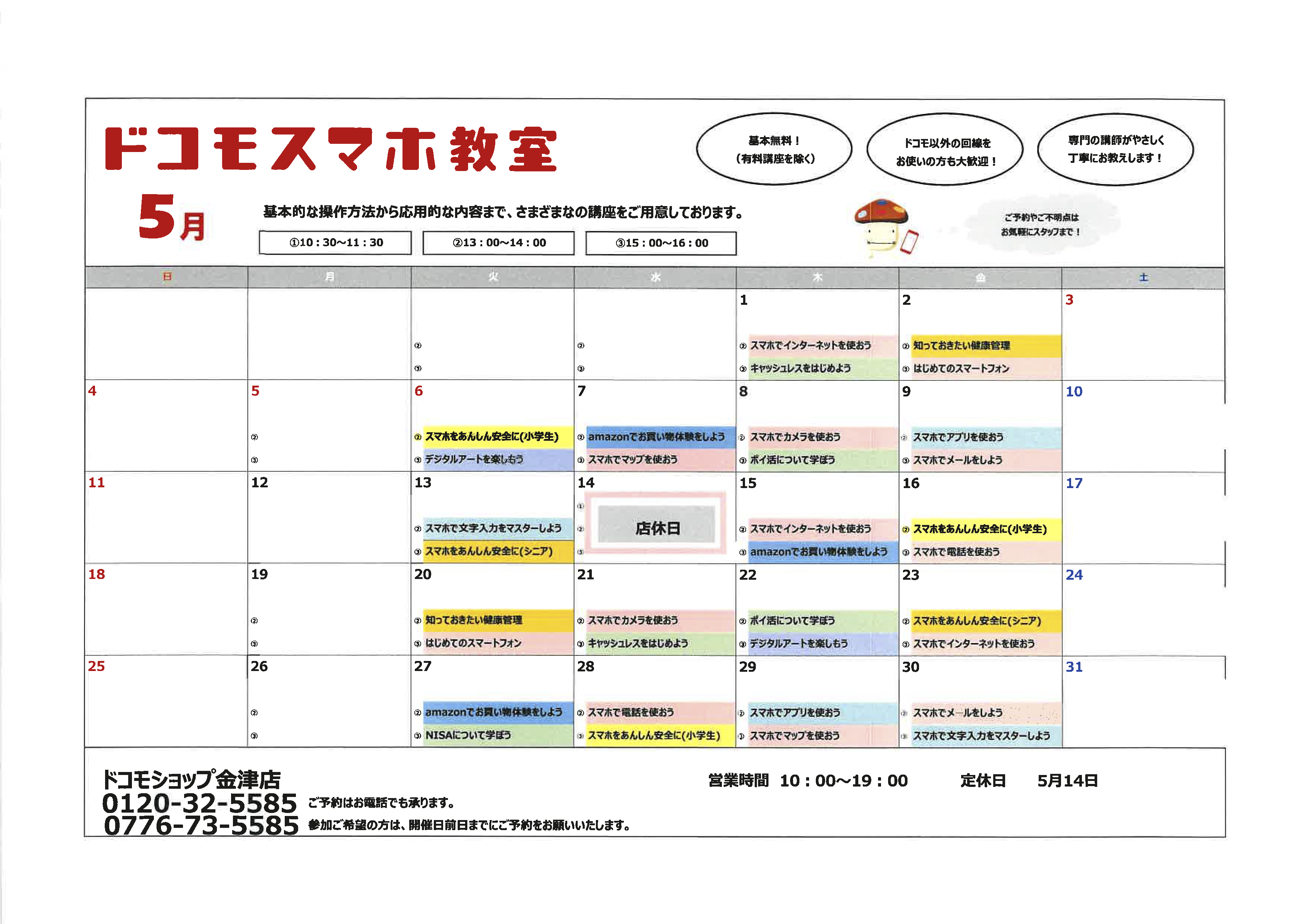 予約・詳細確認サイト:ドコモショップ金津店スマホ教室