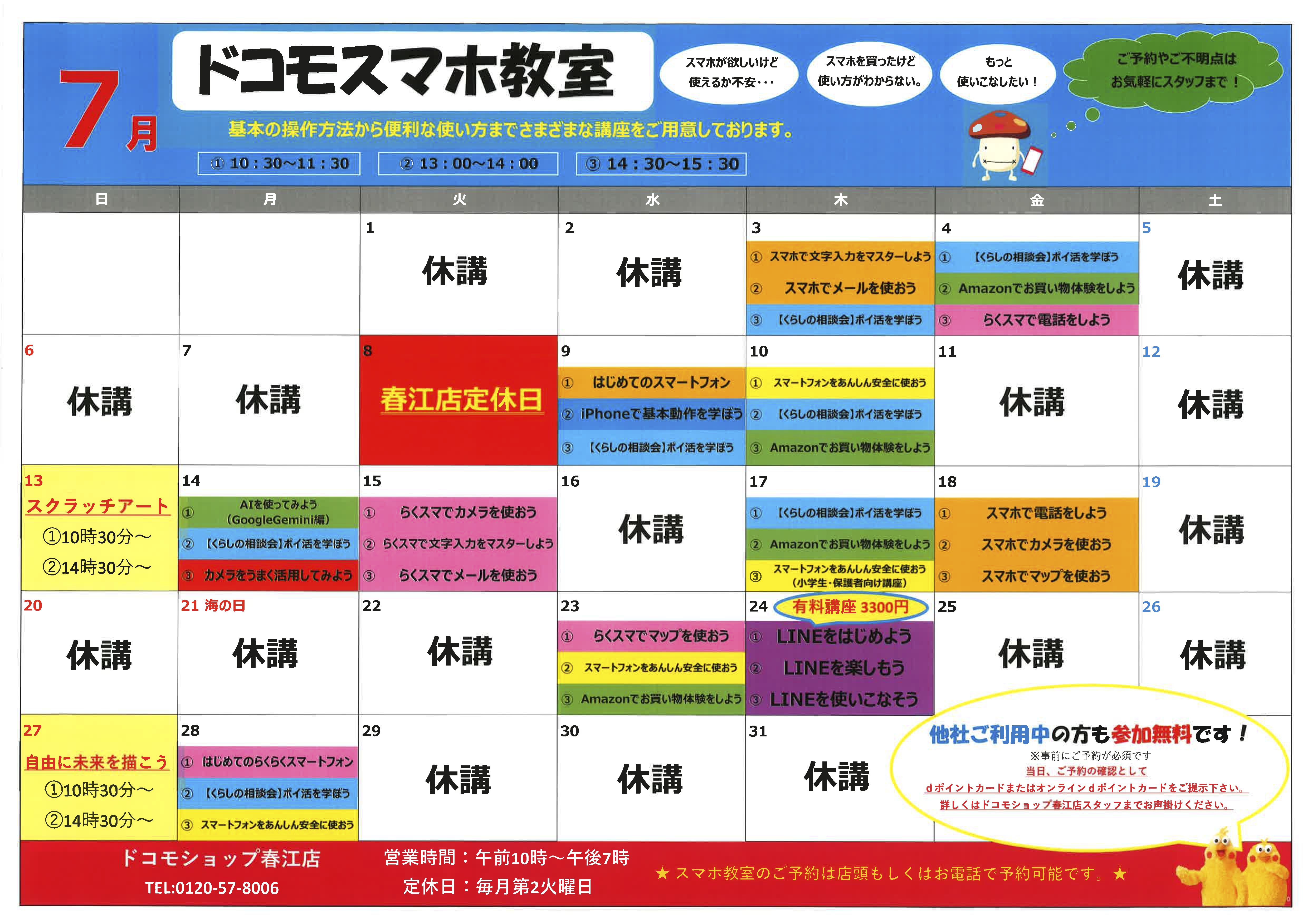 予約・詳細確認サイト:ドコモショップ春江店スマホ教室