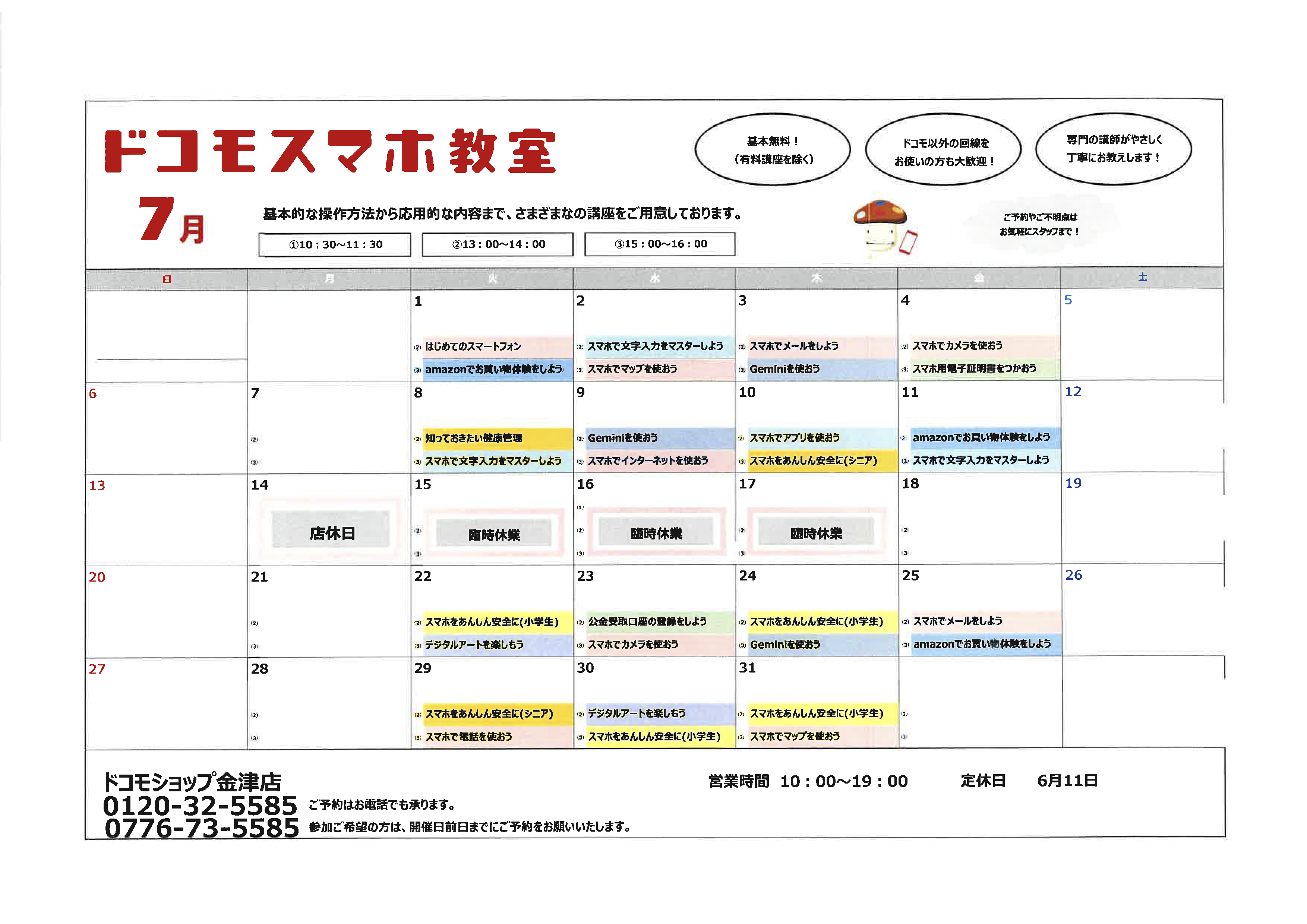 予約・詳細確認サイト:ドコモショップ金津店スマホ教室